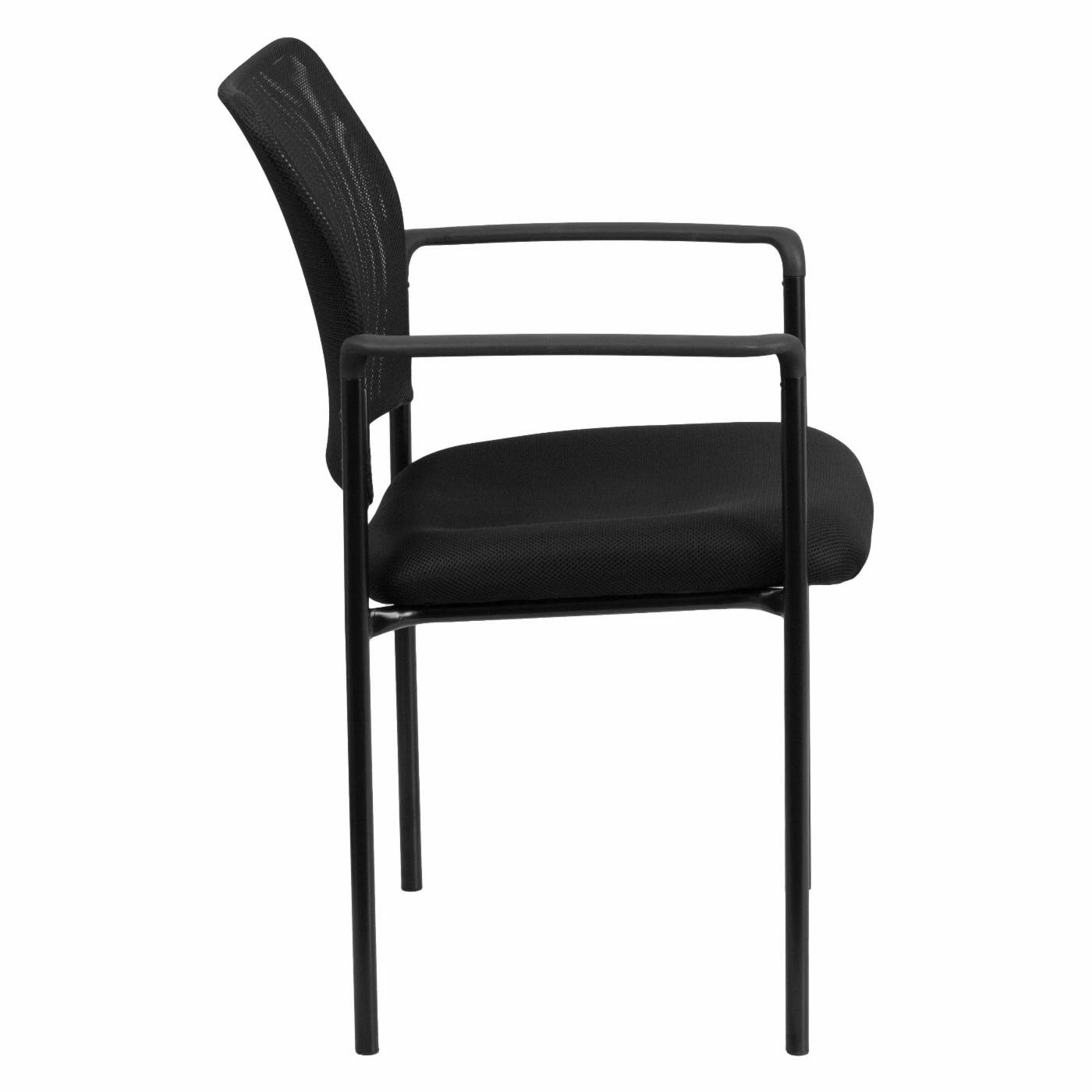 Flexible ventilated mesh gives this Flash Furniture GO-516-2 Black Mesh Comfortable Stackable Steel Side Chair with Arms an impressively comfortable design. The metal and plastic components ensure this arm chair is durable, plus foam padding offers a comfortable seat. This chair is stackable for easy storage.
