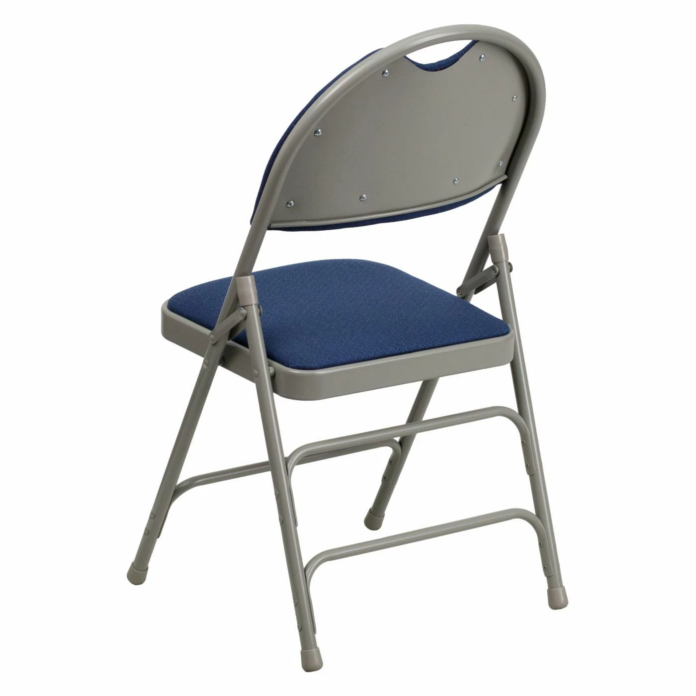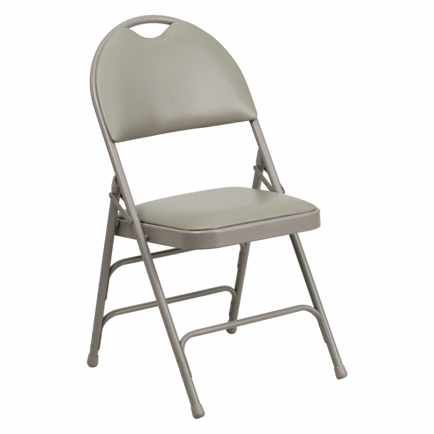 A wide range of color options and sturdy construction make this Flash Furniture HA-MC705A Hercules Series Extra Large Ultra-Premium Metal Folding Chair with Easy-Carry Handle perfect for any indoor or outdoor party. This conveniently foldable chair boasts an easy-carry handle. It’s made of vinyl and metal with foam padding in the seat and back for added comfort.