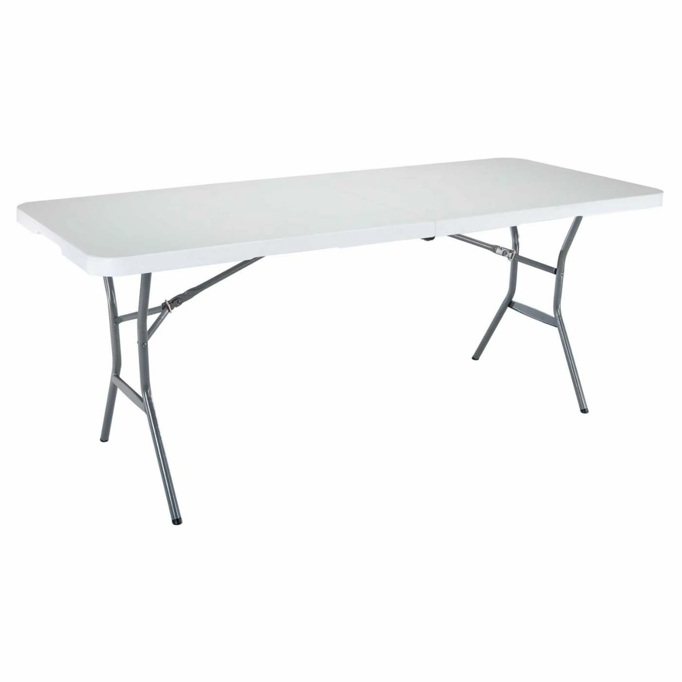 Whether you’re providing ample seating for a business conference or setting up a garage sale, the Lifetime 6ft. Commercial Fold-In-Half Table is a great choice. The lightweight design folds in half, making it conveniently portable and easy to store. But as lightweight as it may be, its heavy-duty tabletop and steel frame are engineered beyond industry standards to withstand the most intense pressure. Measures 72L x 30W x 29H inches and features UV-protection and is stain & weather resistant.