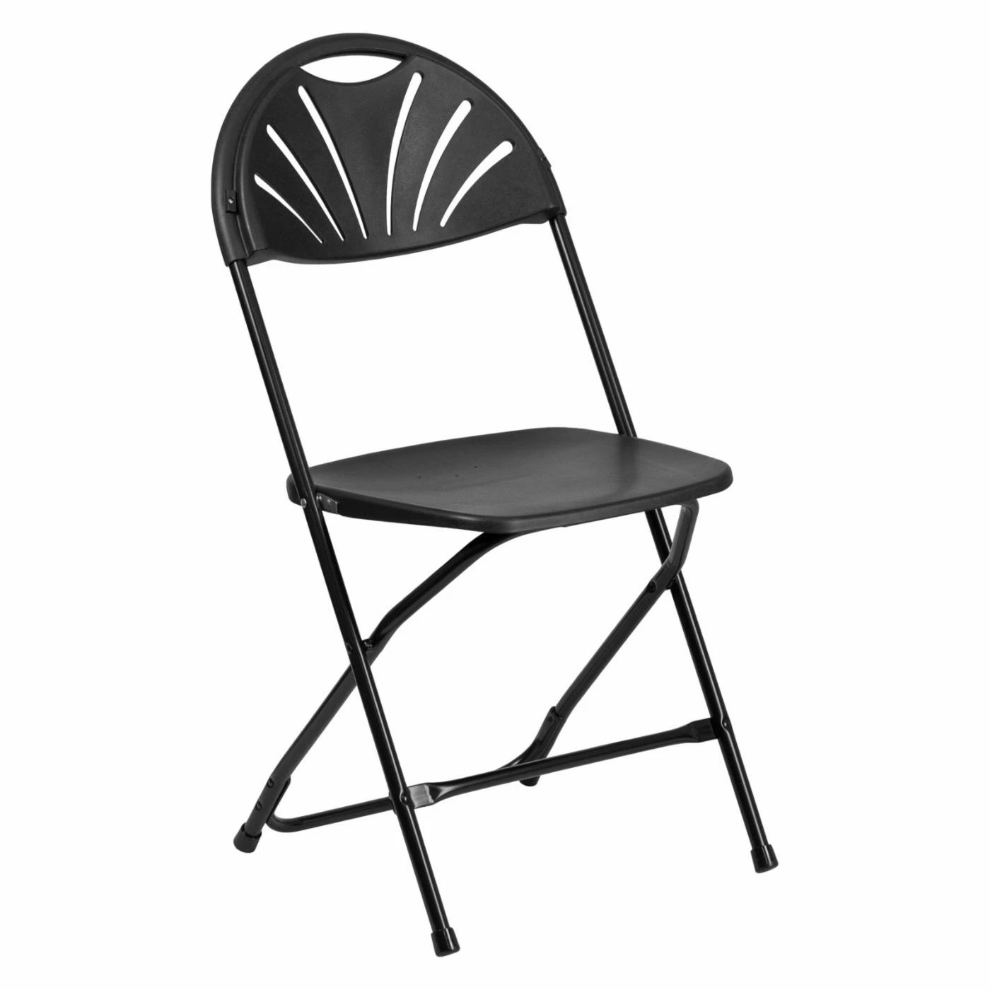 The Flash Furniture Hercules Series Plastic Fan Back Folding Chair blends style and functionality. Easily store your extra seating when not needed and pull it out whenever you have extra guests. This chair is easy to transport, and the fan back adds an unexpected element of timeless style.