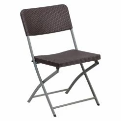 Be ready for company at a moment’s notice with the Flash Furniture Hercules Series Rattan Plastic Folding Chair. Easily store it away when not in use and set it up for holiday dinners and more. The brown seat and back blend easily with a variety of styles, while the rattan pattern adds a bit of elegant style.