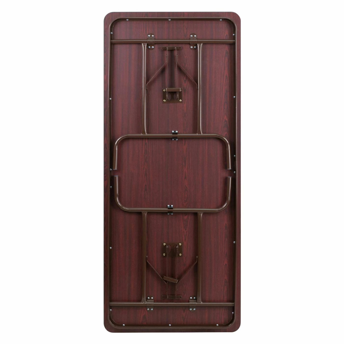 The handsome Flash Furniture YT-3072 30 x 72 in. Rectangular Mahogany Laminate Folding Banquet Table features mahogany laminate so it doesn’t even need a tablecloth. This folding banquet table has a space-saving design and super strong construction. It’s made of laminate and metal, plus boasts folding legs for easy storage when not in use.