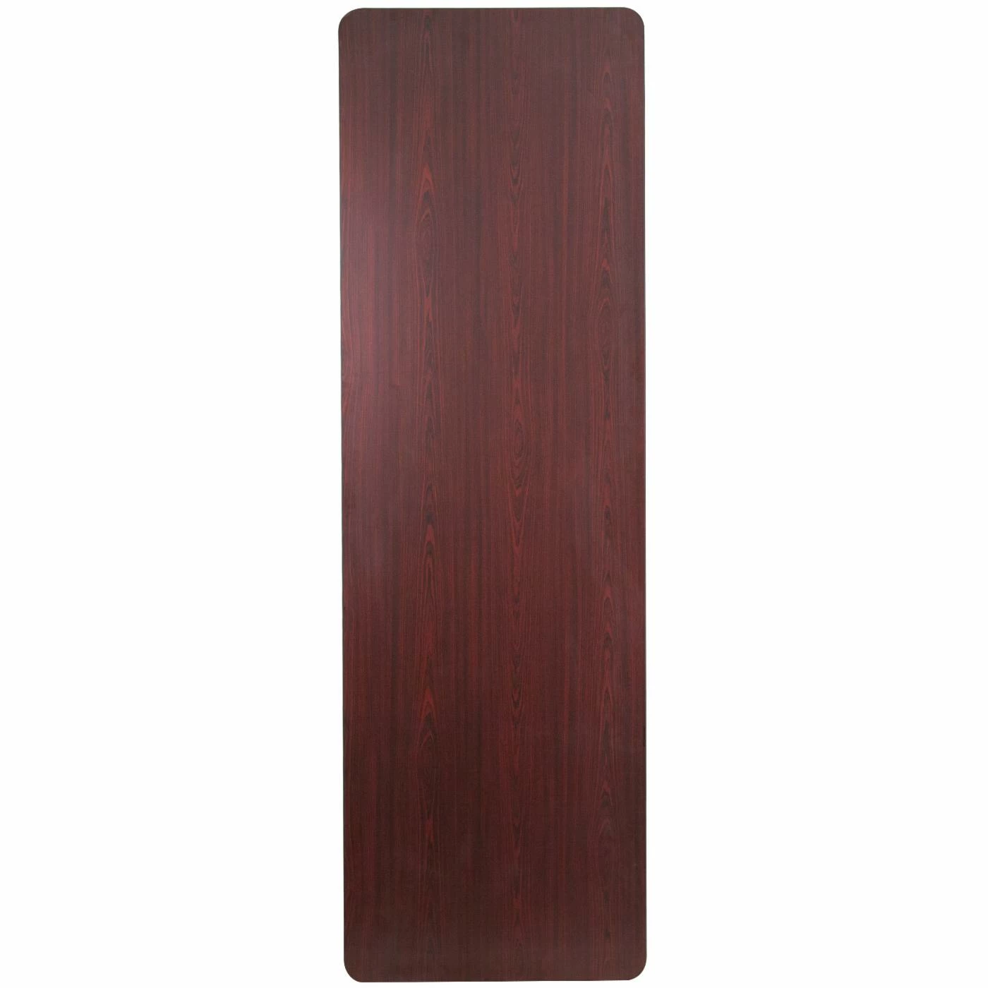 Made of laminate and metal, this Flash Furniture YT-3096 30 x 96 in. Rectangular Mahogany Laminate Folding Banquet Table is sure to last as long as you need it. Its mahogany laminate top is attractive even without a tablecloth. This banquet table boasts a space-saving design and its legs fold under for convenient storage.