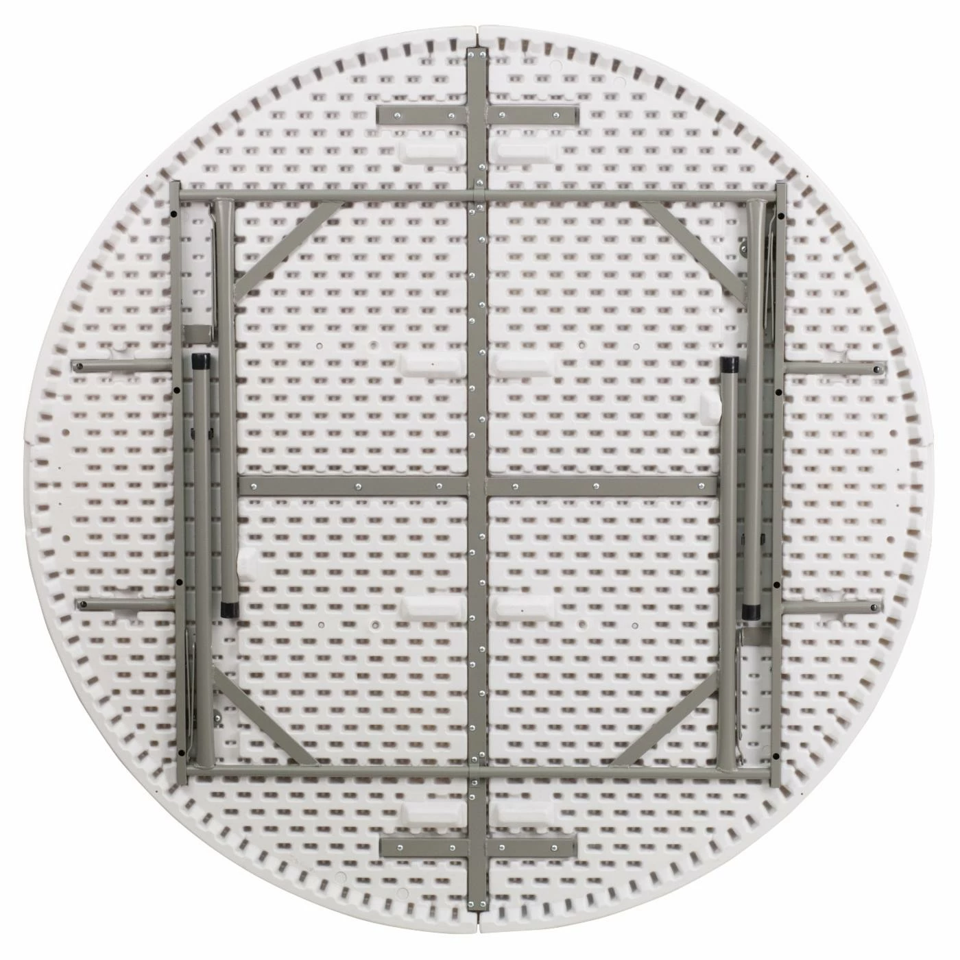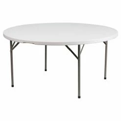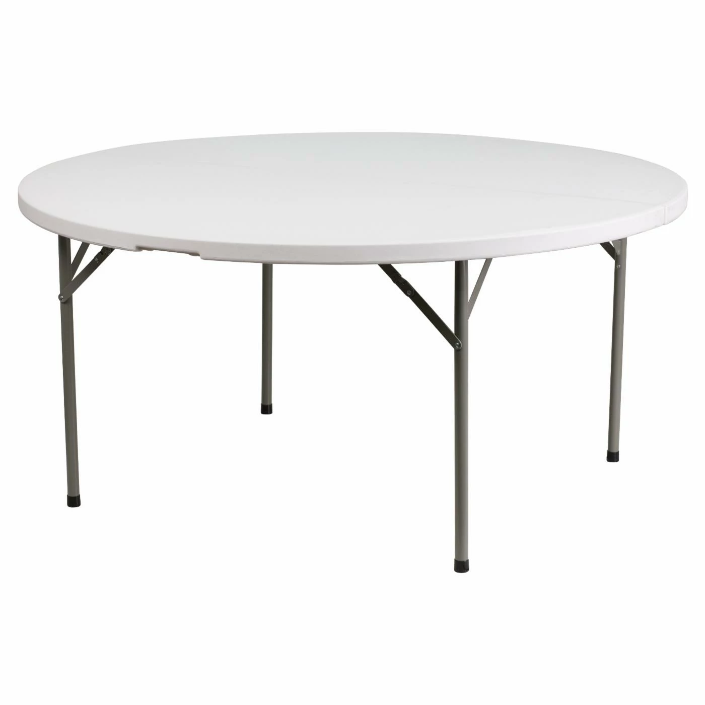 Enjoy a comfortable dining experience anywhere when you have the Flash Furniture 60 in. Round Granite White Plastic Folding Table. This folding table features durable metal legs and a strong plastic tabletop with impact, stain, and water resistance. This large commercial table offers enough space for up to 8 people. Four powder-coated legs with protective floor caps support this table.