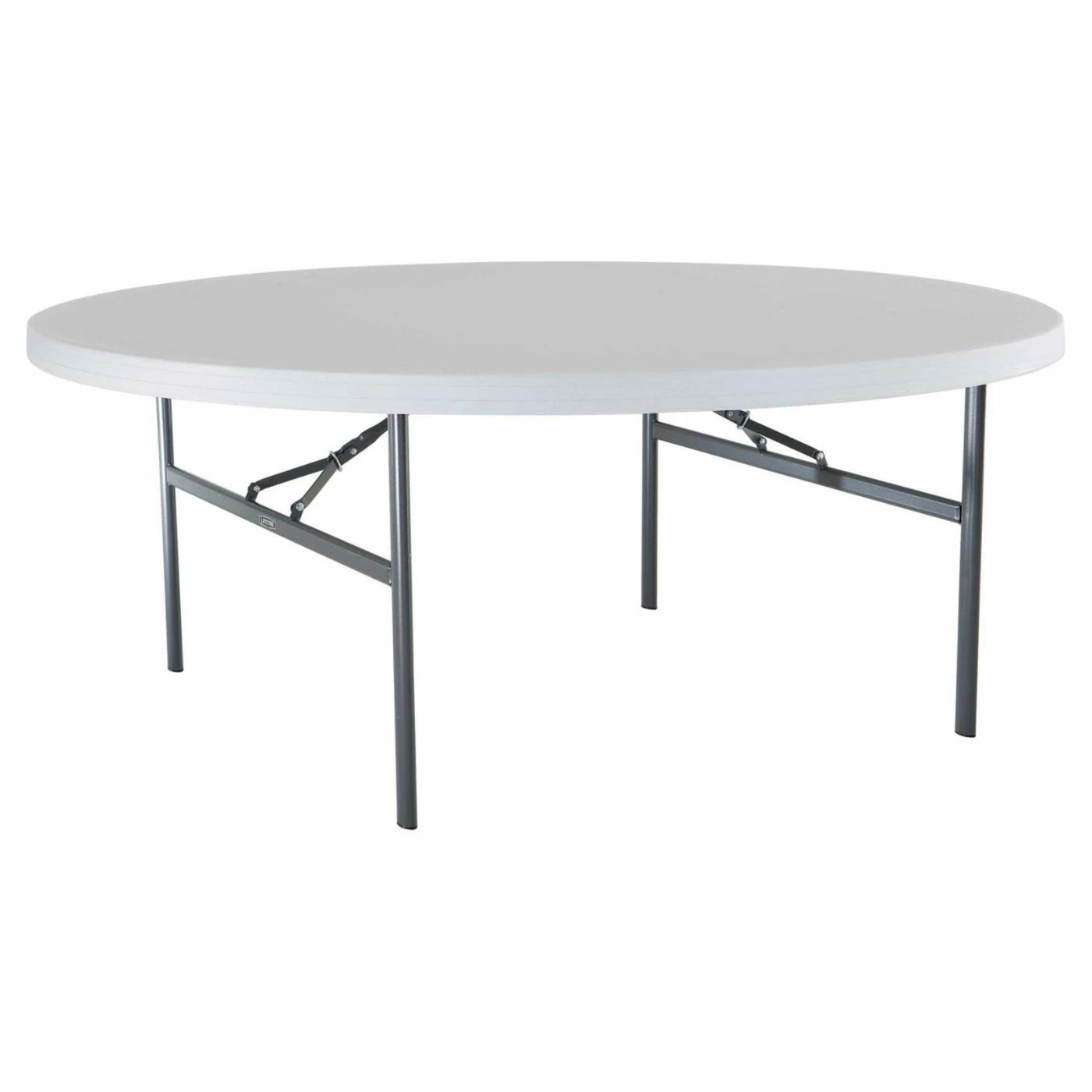 The Lifetime 72 in. Round Heavy-Duty Folding Banquet Table – White – 12 Pack is perfect for banquets both indoors and out. The pristine, white surface is UV protected, won’t crack, chip or peel, and is 100% stain resistant. The lightweight design and folding steel frame makes this set convenient to set-up or carry away when the party’s over. The superior strength, durability and appearance of these tables makes this set a must have for any business or recreational gathering. Measures 72L x 72W x 29H inches.