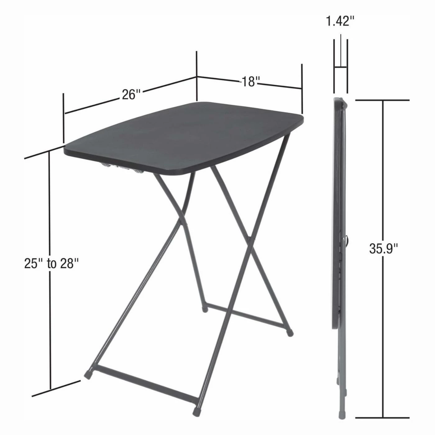 Use the COSCO 18 x 26 in. Indoor/Outdoor Adjustable Height Personal Folding Tailgate Table- 2 Pack at your next tailgate, game night, or barbeque. This small, but sturdy table features three height adjustments and folds up effortlessly for easy storage. It comes in a range of bright colors.