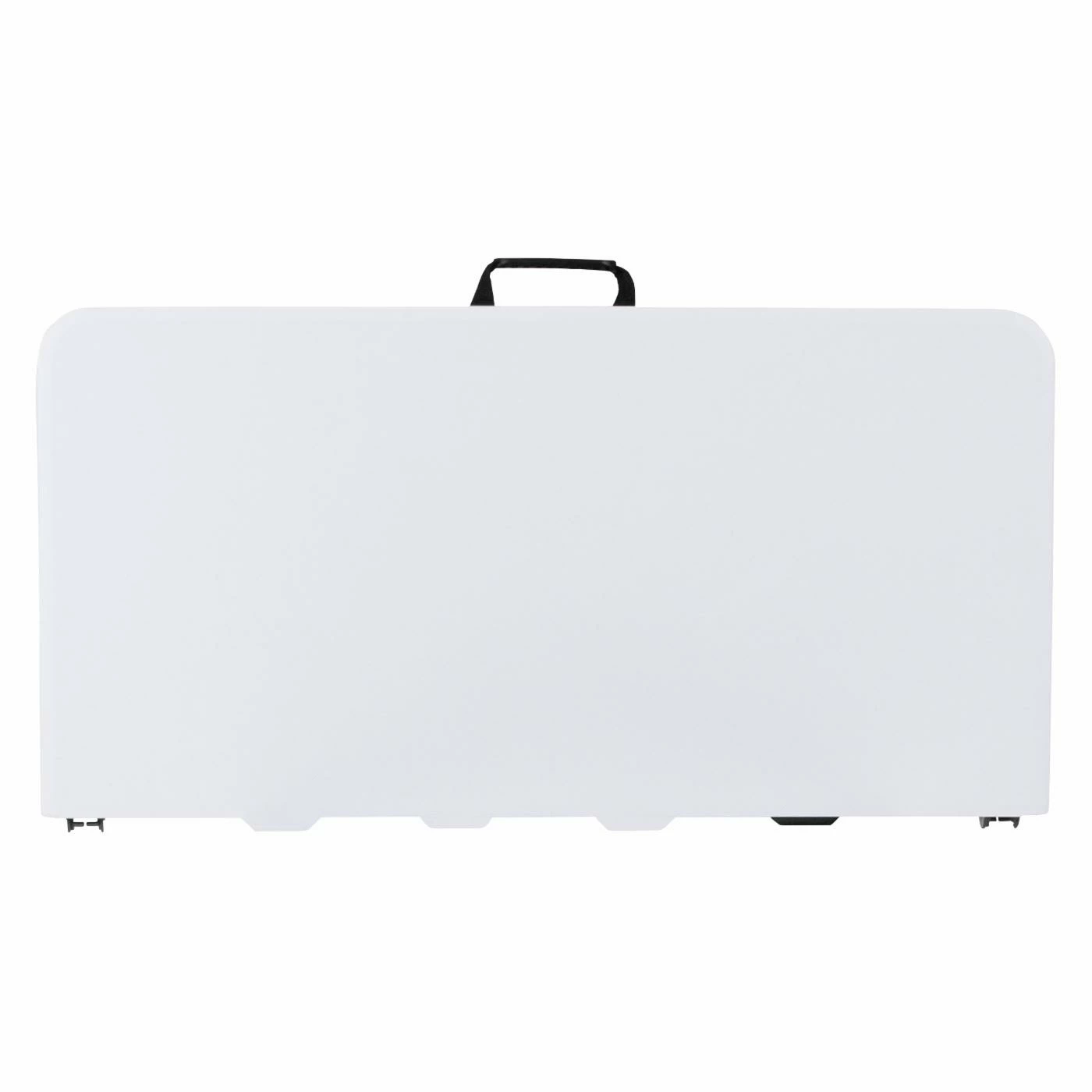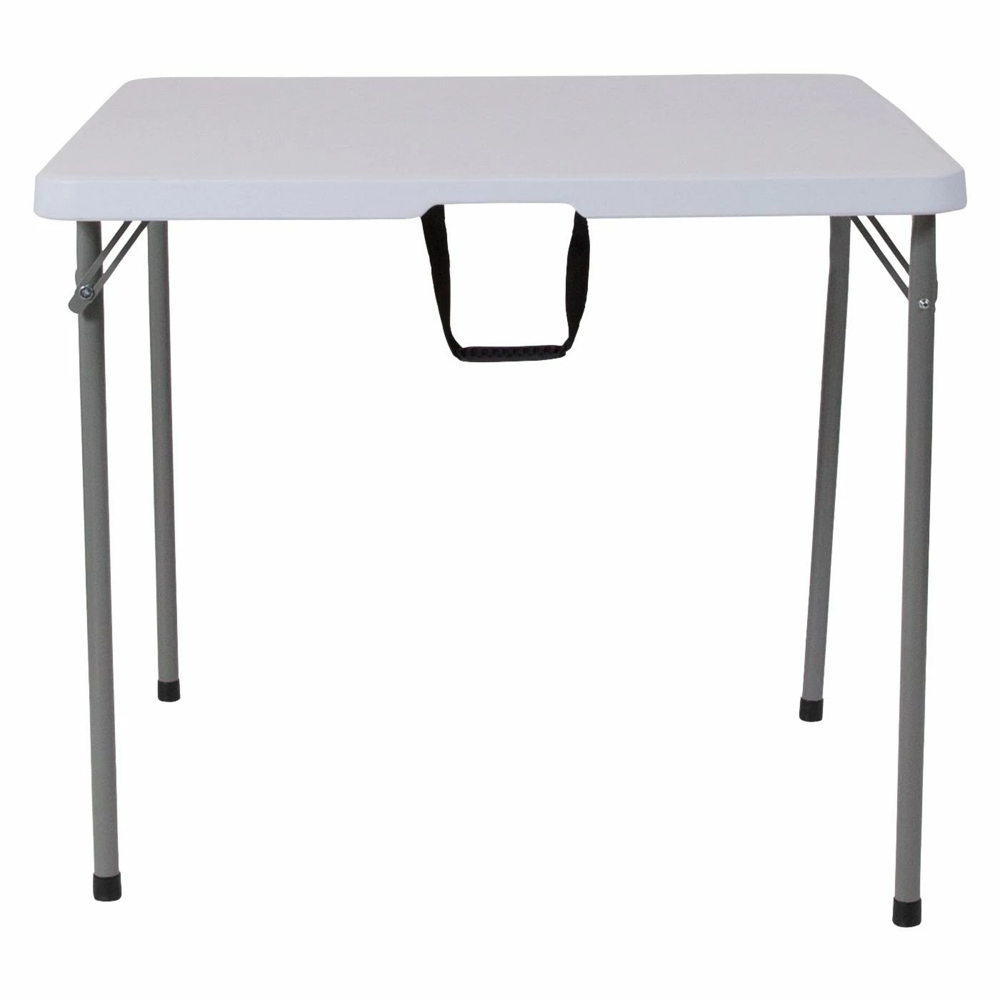 Need a temporary table or work-surface? The Flash Furniture 34 in. Square Bi-Fold Plastic Folding Table with Carrying Handle is here to provide. This table has a hardy top made from thick, white plastic that’s ideal for just about any need (except maybe ironing) and wipes clean with just a damp cloth. Tubed metal constructs the legs, finished in granite gray. The legs fold up beneath the tabletop, which folds in half for storage. A built-in carry handle lets you tote the folded table anywhere you need.