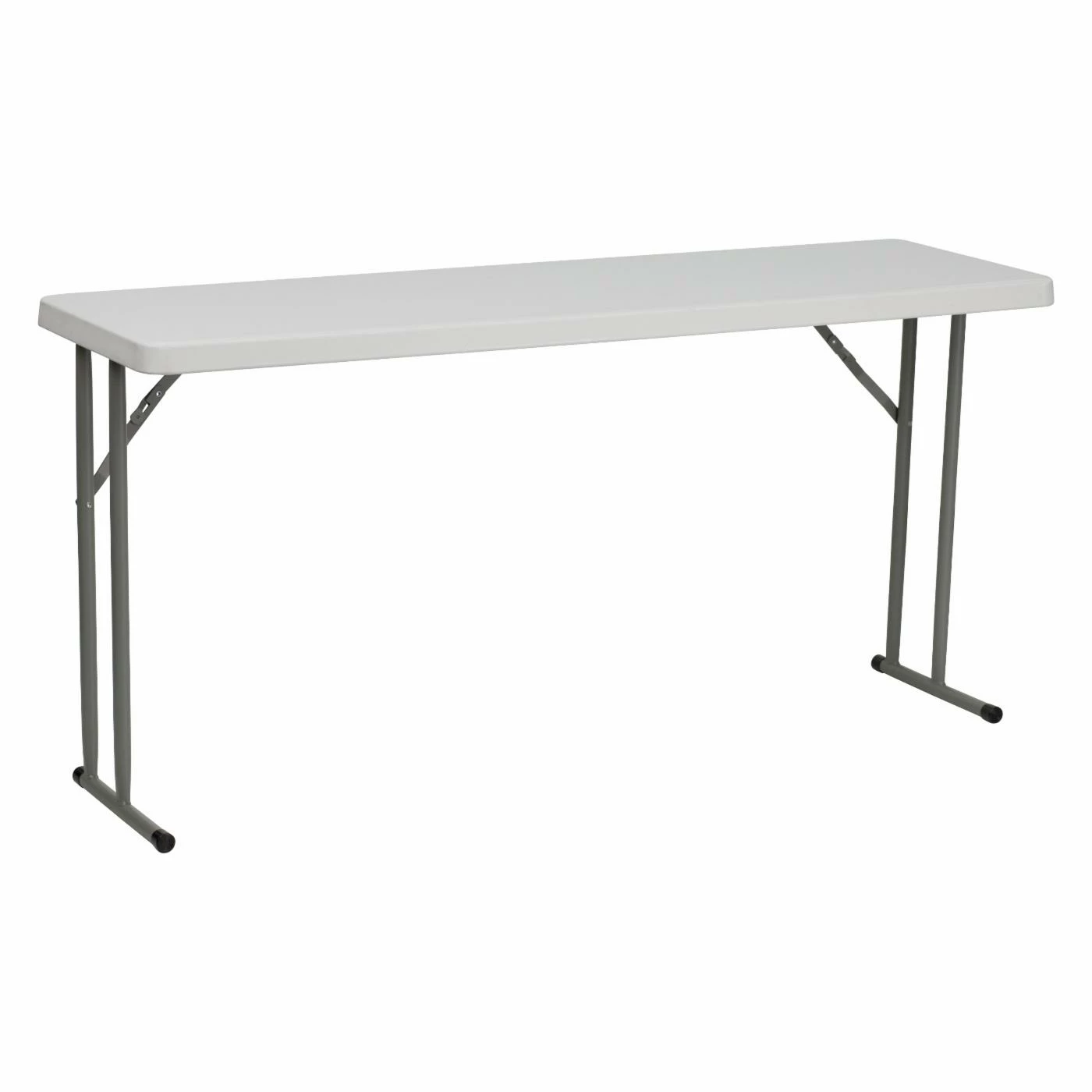 This Flash Furniture RB-1860 18 x 60 in. Folding Training Table is excellent for game nights, family gatherings, or just moments when you need more tabletop space. Tough metal and plastic construction ensures lasting use, and it’s also easy to clean and store when you’re done. This table folds for easy storage.
